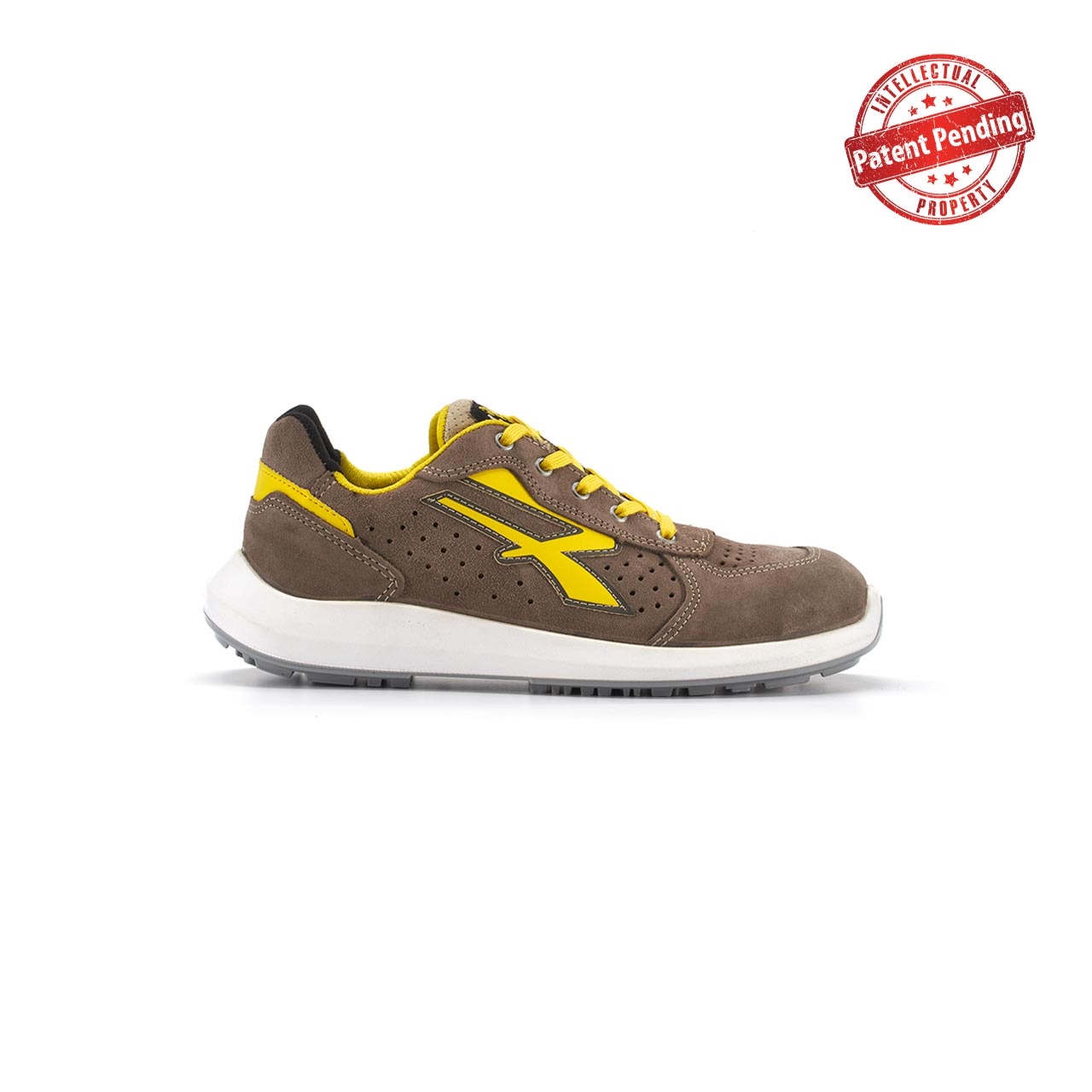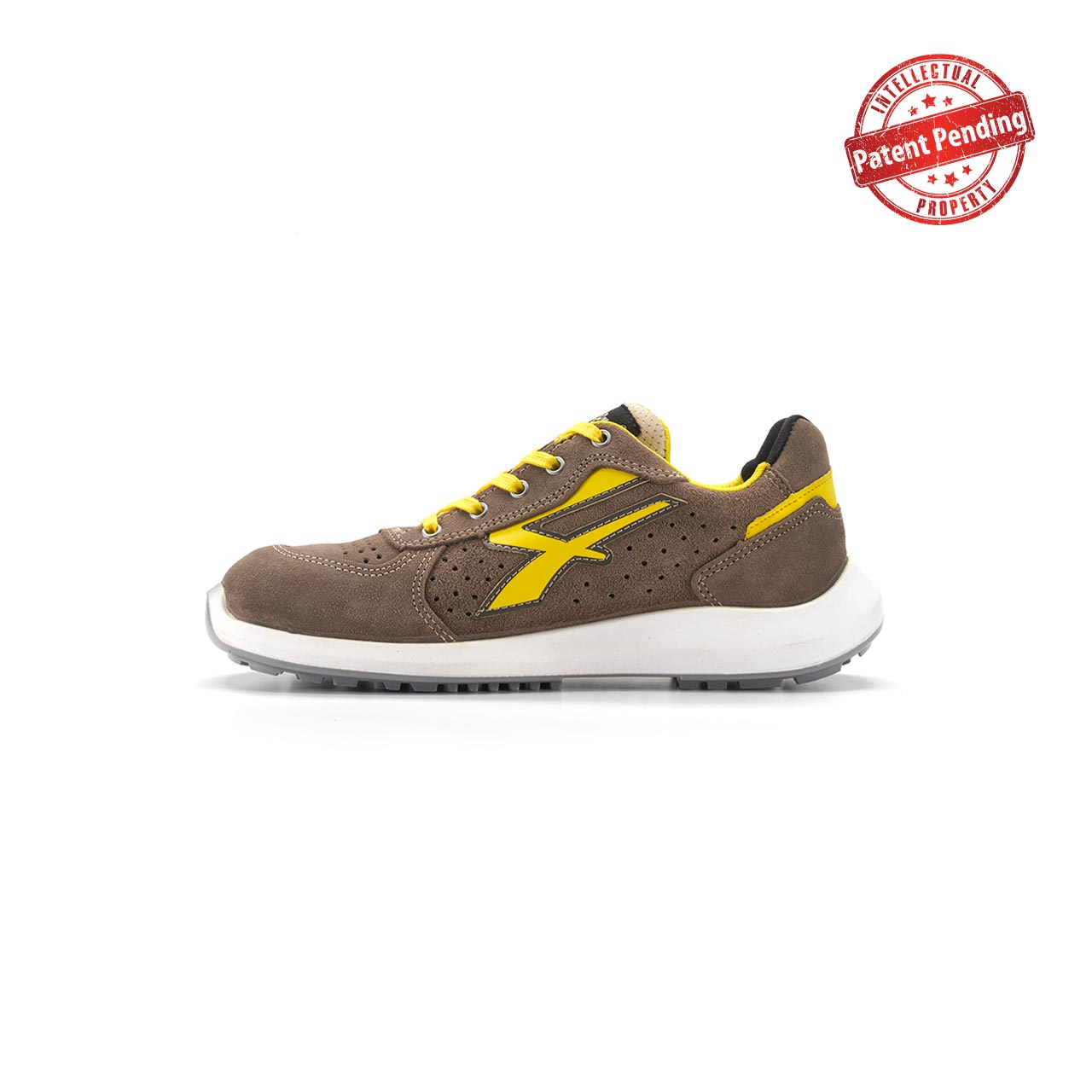 Ventajas : Calzado Dorado de Corte de piel afelpada con orificios de ventilación .Puntera AirToe Aluminum, sistema antiperforacion Save & Flex PLUS,con plantilla amovible WOW y Suela PU/PU High Rebound en Elastopan de Basf.