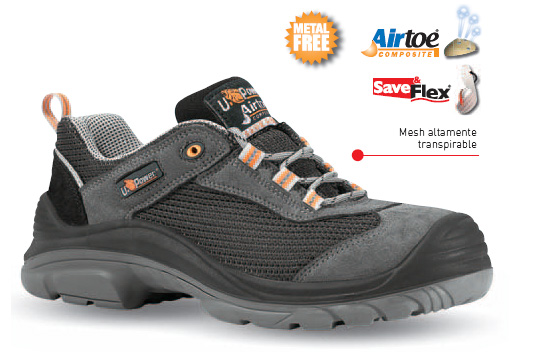 Ventajas : Calidad de la fabricación. Zapato de seguridad corte suave piel afelpada con insertos en Mesh transpirable. Forro Wing Tex con túnel de aire transpirable. Puntera AirToe de seguridad,perforada con membrana transpirable. Plantilla antiperforación Save & Flex plantilla antiperforación, “no-metal” PS4 MATRIX. Plantilla amovible Ergo Dry, plantilla amovible anatómica en fieltro transpirante,antiabrasión y antideslizamiento.SUELA INTERMEDIA DE CONFORT, PU suave expandido.SUELA DE CONTACTO,Tecnopolimero Last Generation U-GRIP®. HORMA, Horma ancha Natural Confort 11, Mondopoint.