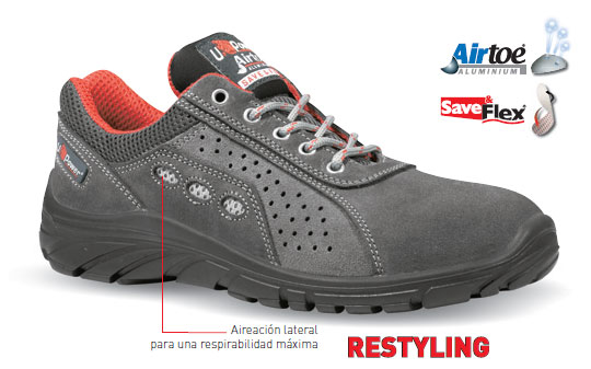 Ventajas : Calidad de la fabricación. Zapato corte suave piel afelpada transpirable.Forro Wing Tex con túnel de aire transpirable. Puntera AirToe Aluminium puntera de seguridad,perforada con membrana transpirable. Plantilla antiperforación Save & Flex plantilla antiperforación, “no-metal” PS4 MATRIX. Plantilla amovible Ergo Dry, plantilla amovible anatómica en fieltro transpirante,antiabrasión y antideslizamiento.SUELA INTERMEDIA DE CONFORT, PU suave expandido.SUELA DE CONTACTO,Tecnopolimero Last Generation U-GRIP®. HORMA, Horma ancha Natural Confort 11, Mondopoint.