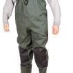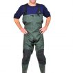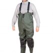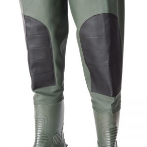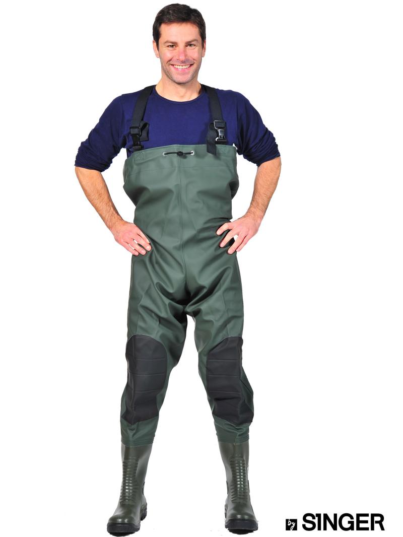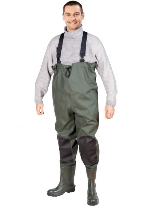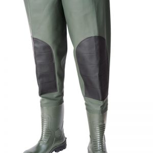 Ventajas : Peto Waders de polyester/P.V.C pesado y resistente (700 gr/m2) montados sobre botas.Suela intercalar anti perforación y puntera de protección.Refuerzo negro anti desgaste sobre la parte delantera de los waders.Soldaduras de alta frecuencia.Tirantes elásticos regulables con hebilla de cierre.Bolsillo interior.Borde alto reforzado doble capa.Ergo de descalzamiento.Cierre elástico a la cintura con cordón.Altura 143 cm.