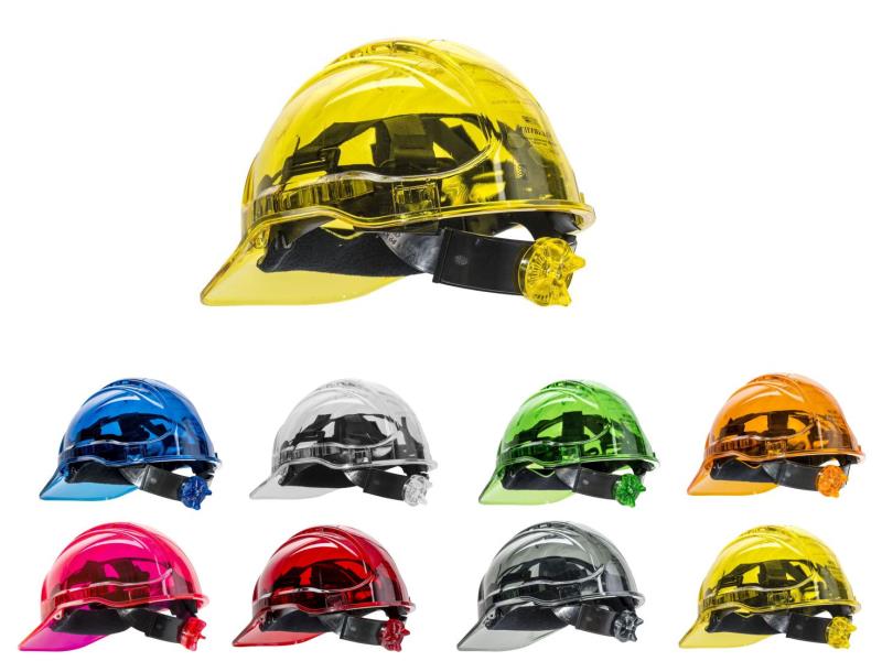 Ventajas : Casco de protección Portwest Peak View Plus®. Diseño exclusivo y modelo patentado por Portwest. Casco transparente para ver a través de la visera y laterales: permite al usuario mirar hacia arriba sin necesitar de girar la cabeza. Cubierta de Policarbonato extra fuerte y, a la vez, muy ligera que ofrece protección contra los rayos UV. Arnés textil de 4 puntos, tamaño ajustable. Versión no aireada. Características: Propiedades eléctricas (440V ac).Diseño exclusivo de Portwest y modelo patentado.Casco transparente para ver a través de la visera y laterales. Cubierta de Policarbonato muy resistente y, a la vez, ligera de peso. Estabilizado UV 400. Arnés textil de suspensión de 6 puntos. Ajuste de tamaño por hebilla para mayor facilidad. Suave banda esponjosa para el sudor incluida. Accesorios compatibles disponibles. Disponible en una variedad excelente de colores corporativos. 7 años de vida desde la fecha de fabricación, indicado en la hoja de usuario del producto
