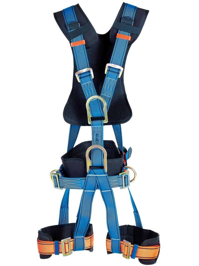Ventajas : Comodidad y perfecto ajuste. Para la protección anticaída y las situaciones en posición de trabajo (sujeción). Cinchas regulables en muslos, hombros y cinturón. Cinturón, perneras y dorso acolchados para un mejor confort