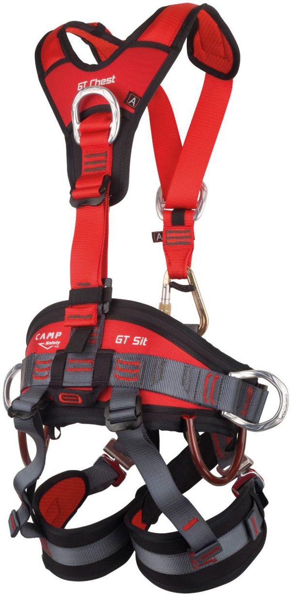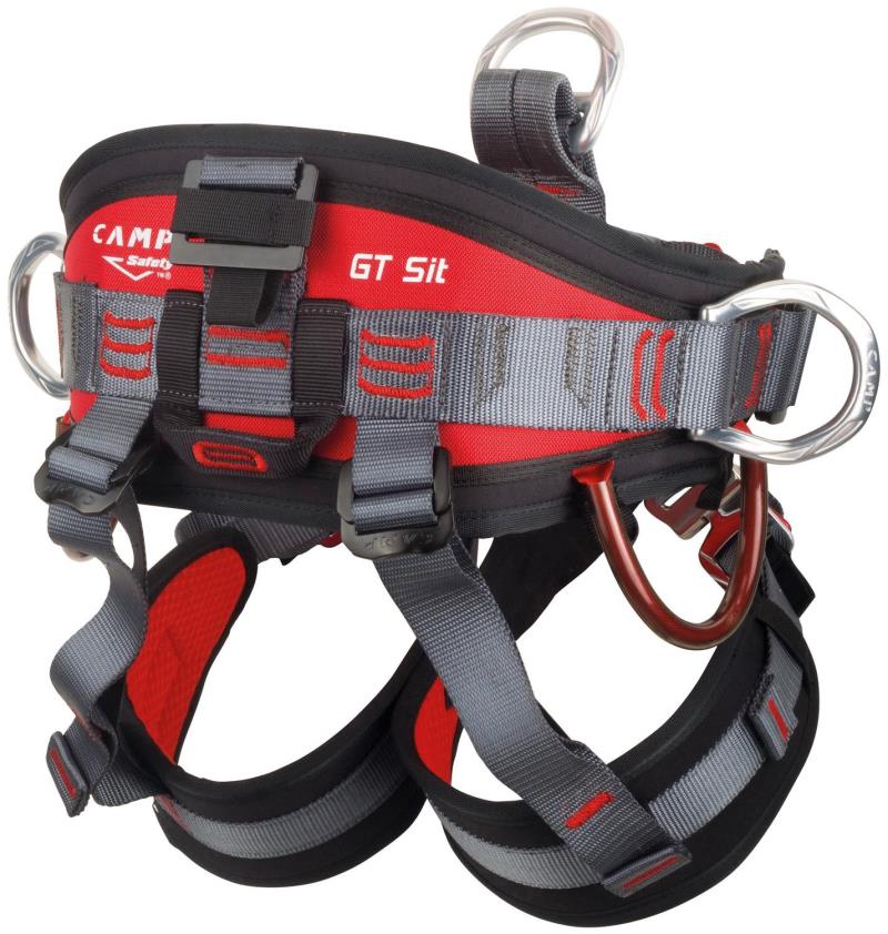 Ventajas: Arnés sujeción y suspensión Camp Safety GT Sit®.El arnés GT Sit representa un salto adelante en la comodidad de los arneses para trabajos verticales. Desarrollado siguiendo las recomendaciones que surgieron como resultado del programa de investigación SOSPESI de Camp Safety sobre el síndrome de suspensión. La innovadora estructura de anclaje entre perneras y cinturón hace que el GT Sit sea perfecta tanto durante la suspensión como para el desplazamiento al suelo. Todos los rellenos, con espesores y texturas diferentes están diseñados para darle el apoyo adecuado a todas las partes del cuerpo involucradas. El anclaje ventral patentado, se caracteriza por dos anillos concéntricos: uno para alojar el anillo de aluminio que conecta las cuerdas y las herramientas, y otro para conectar el arnés pectoral y el bloqueador ventral. Características: Hebillas con liberación STS patentadas, montadas en las perneras.3 anillos de anclaje de aleación de aluminio: ventral para la suspensión y laterales para el posicionamiento. Anillo trasero de material textil para retención. Posibilidad de instalar el arnés pectoral GT Chest, con dos puntos de anclaje anticaídas (esternal y dorsal) para lograr un arnés integral anticaídas.