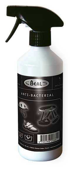 Ventajas : ANTIBACTERIAL BEAL. Producto antibacteriano preparado para limitar el desarrollo de los malos olores. No daña la poliamida ni el poliéster.Presentación: 500 ml. Puntos fuertes: – Vaporización mediante bomba manual – 500 vaporizaciones por botella – Antibacteriano con olor perfumado Utilización: Para equipos en contacto con la piel.