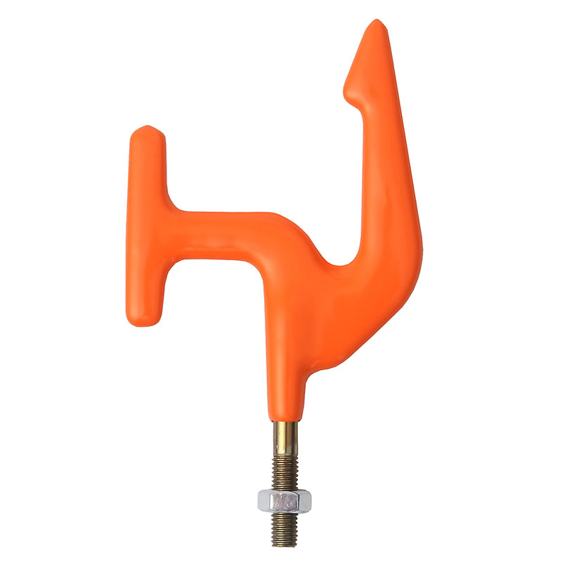 Ventajas: Elemento que se inserta a rosca en el extremo superior de la PER1. Permite elevar, abrir y cerrar los ganchos PER 9 y PER 0. Se inserta por la anilla horizontal de los ganchos. Se elevan, y al apoyarlos sobre una barra horizontal se abren. Con una pértiga se pueden colocar múltiples ganchos. Para desarmarlos se efectúa la misma operación, es decir, se inserta por el aro y se empuja hacia arriba.