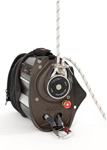 Caracteristicas técnicas: Cuerdas: El sistema estándar para agarrar la cuerda permite utilizar una cuerda semiestática de 10 a 13 mm EN 1891. El sistema táctico para coger la cuerda permite utilizar cuerdas de 7 a 9 mm. Carga máx.: La carga de trabajo segura (SWL) son 200kg. Cuando se utiliza en una situación de rescate con el personal entrenado adecuado, la carga total no debe exceder los 250kg. Sin embargo, si la carga sobrepasa los 265 kg, la sobrecarga se monitoriza electrónicamente y el motor se apaga automáticamente. Velocidad de ascenso y descenso: La velocidad de ascenso y descenso se puede ajustar continuamente de 0 a 22 metros por minuto. La velocidad y dirección se controlan con una mano, una mano queda libre siempre. Si la batería se agota durante el ascenso o el descenso, se puede utilizar el descendedor de emergencia para bajar. La velocidad de descenso es de aproximadamente 0,5 m/s. Duración de batería: La duración normal de la batería va de 800 a 1000 ciclos de carga.Rango de temperaturas: -10 °C to + 40°C. Peso: 18 kg incluyendo la batería interna. Dimensiones: 40 x 30 x 25 [cm]