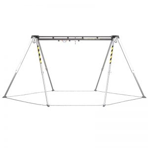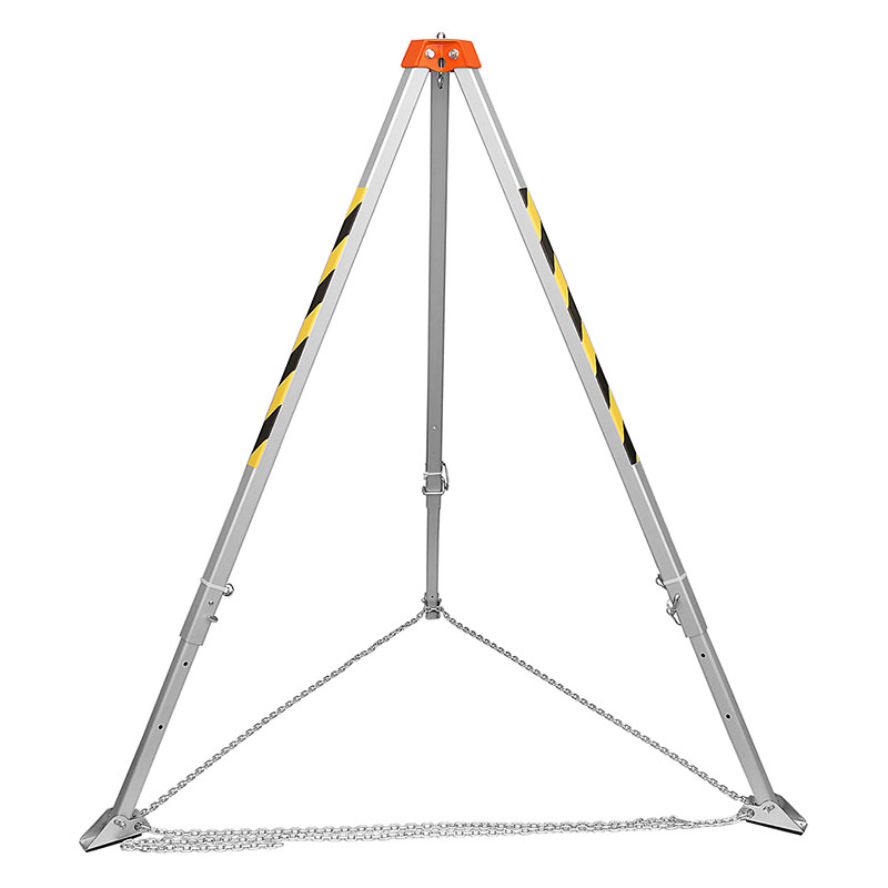 Ventajas : Trípode de seguridad TM9 diseñado para usar por 1 persona. Cabeza de acero equipada con 4 puntos de anclaje. Patas de aluminio telescópicas con 7 puntos de ajuste en altura. Cada pata esta equipada con una marca para el winche. Pies antideslizantes que permiten usar el equipo sobre superficies deslizantes. Patas protegidas con cinturón ó cadena de acero. Altura: 147-229 cm. Diámetro de apertura bajo trípode: 140-213 cm. Distancia entre pies: 119-182 cm. Ascenso/descenso max de 1 persona. Puntos de anclaje en la cabeza: 4. Dimensiones de envío: 175x23x23 cm.
