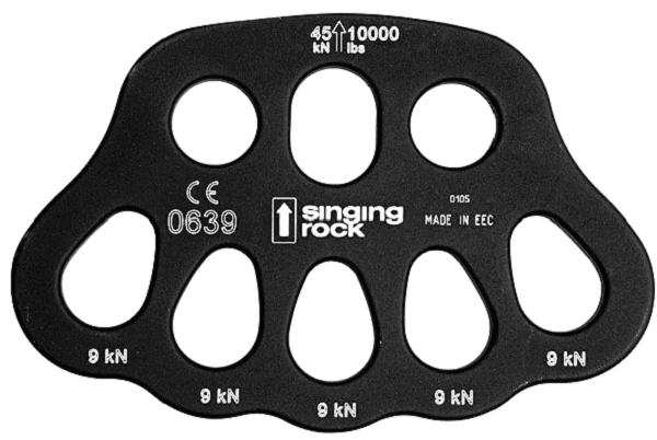 Ventajas : Placa multianclajes Rigging plate.Ayuda a organizar los mosquetones en los puntos de reunión.Eficaz dirección de la fuerza en diferentes direcciónes de la carga. Los agujeros redondos ( 7 mm. ) permiten sujetar las cuerdas directamente en la placa en cualquier agujero. Grosor 5 mm. 45kN. Aleación ligera negro mate. Peso 72 g.