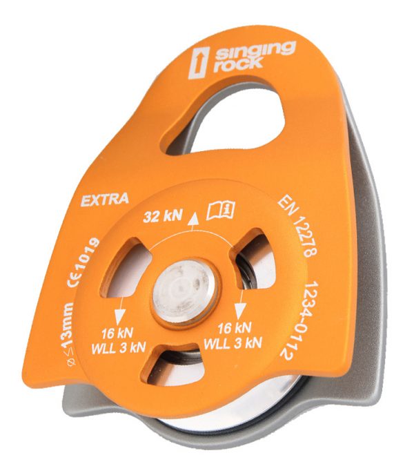 Ventajas : Polea EXTRA ROLL compacta. Polea pequeña ligera y duradera para UTILIZAR CON NUDO Prusik. El punto de anclaje acepta hasta 3 mosquetones. Resistente a la fricción y gran eje para una gran eficacia. Para cuerdas estáticas y dinámicas Max. 13 mm. Eje en aleación ligera de diametro 48 mm. Resistente al balanceo. Peso 424 gr. 36 kN.