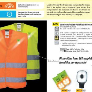 Ventajas : Brazalete alta visibilidad cierre velcro.Poliéster con impregnación de PU. Anchura 90 mm. Banda retro-reflectante 3M ScotchliteTM de 30 mm. Tiras autoadherentes. Comodo y practico.