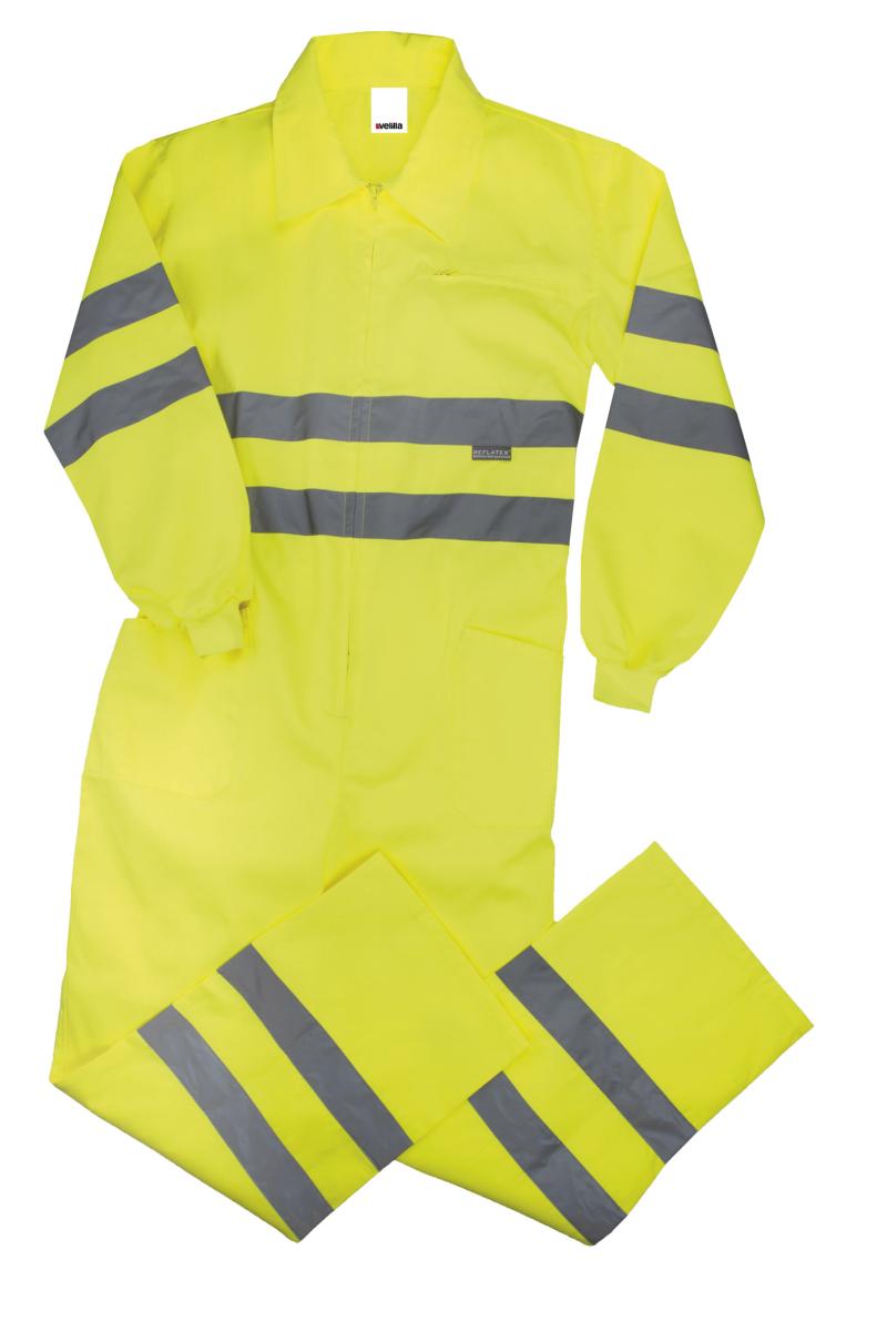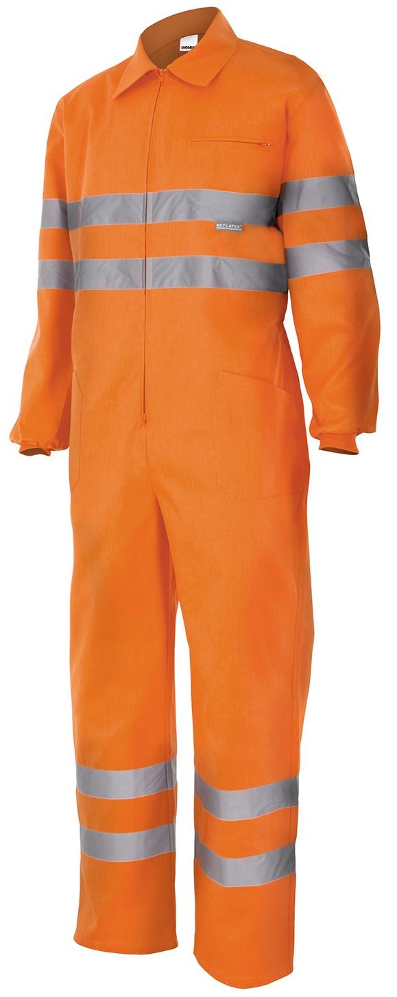 Ventajas : Mono de alta visibilidad con cremallera central, pespunte trasero de seguridad y puños elásticos. cintas reflectante en mangas, pecho y piernas.