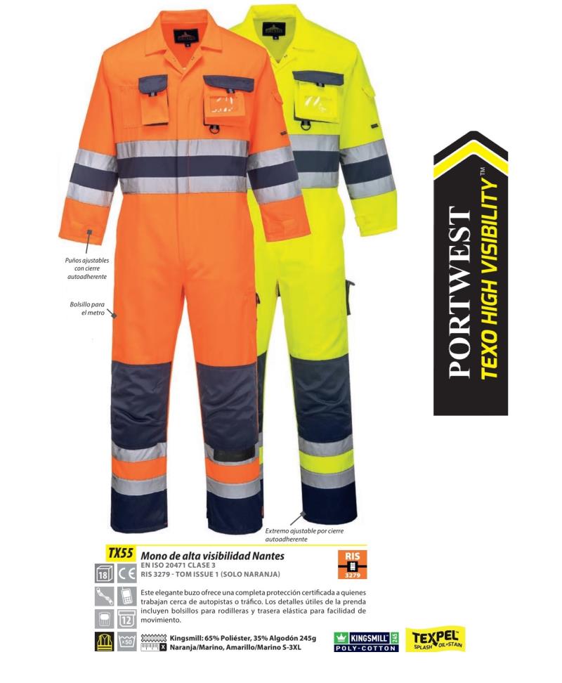 Ventajas :Buzo alta visibilidad contraste Portwest® Nantes. Buzo de alta visibilidad elegante y moderno muy funcional.Cuenta con utiles complementos .Compatible con las cazadoras TX50 y el peto TX52. Naranaja fluor de alta visibilidad. Dos bandas orizontales reflectantes de 5 cm. en pernera y pecho. Multitud de bolsillos.Bolsillo para acople de rodilleras.Tejido Kingsmill de primera calidad.