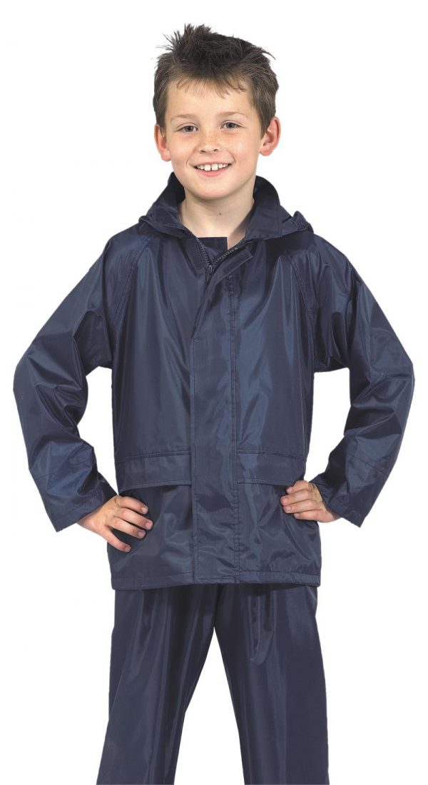 Ventajas :Conjunto impermeable ( Chaqueta y pantalón)»Junior». Cortavientos, impermeable y transpirable, cómodo de excelente calidad. El tejiido ofrece una mezcla de transpiración e impermeabilidad y protección contra el viento.Con capucha oculta.Cremallera oculta con tapeta de seguridad. Tejido «100% poliéster con PVC. 150g.Tejido resistente a ragados.