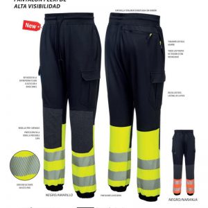 Ventajas : Pantalón recto, multibolsillos. Elástico en cintura. Trabillas. Dos bolsillos de apertura inclinada en los costados. Dos bolsillos de carga laterales con cartera y cierre de velcro. Dos bolsos traseros interiores con carteras de velcro. Tres cintas reflectantes en perneras. Combinado con alta visibilidad. Cierre de botón y bragueta de cremallera. Combina con referencia cazadora AV C3311.