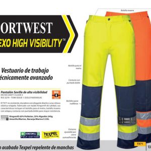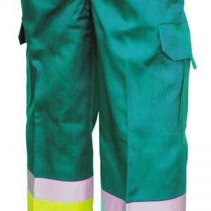 Ventajas : Pantalón recto, multibolsillos. Elástico en cintura. Trabillas. Dos bolsillos de apertura inclinada en los costados. Dos bolsillos de carga laterales con cartera y cierre de velcro. Dos bolsos traseros interiores con carteras de velcro. Tres cintas reflectantes en perneras. Combinado con alta visibilidad. Cierre de botón y bragueta de cremallera. Combina con referencia cazadora AV C3211.