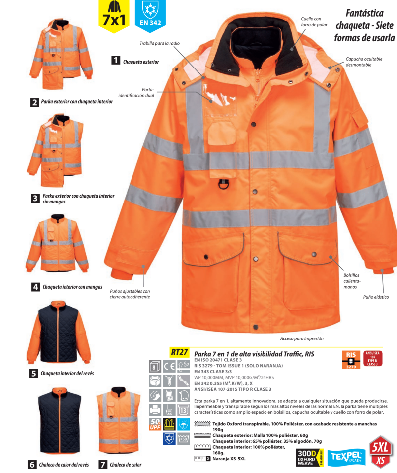 Parka alta visibilidad Traffic® desmontable.RT27