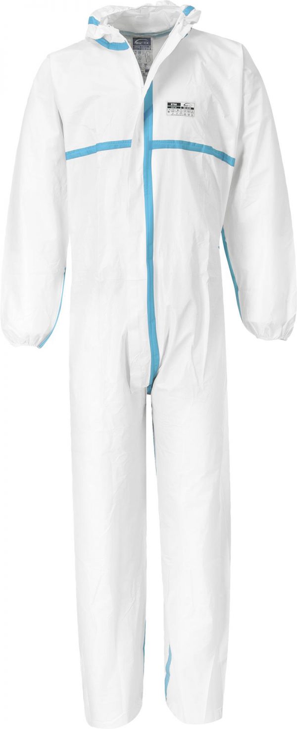 Ventajas: Buzo Biztex Microporoso tiene amplia hechura y es más fácil de usar sobre la ropa. Este buzo realza la comodidad y la protección Tipo 4, 5 y 6, con una confortable zona transpirable. El diseño único empareja la combinación de dos tejidos, comenzando en la capucha y continuando por la espalda hasta las rodillas. Genera una excelente barrera química que no libera fibras y es muy transpirable y cómodo.