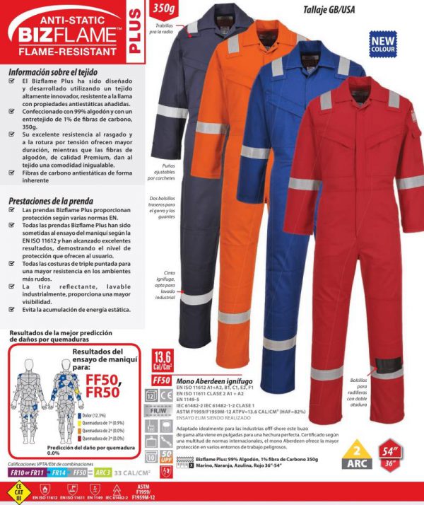 BuzoPortwest BizFlame®Plus ignífugo-antiestático arco eléctrico.FF50