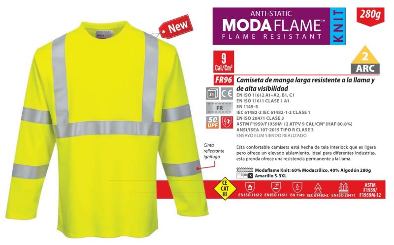 Camiseta ignífuga alta visibilidad Portwest Modaflame®.FR96