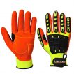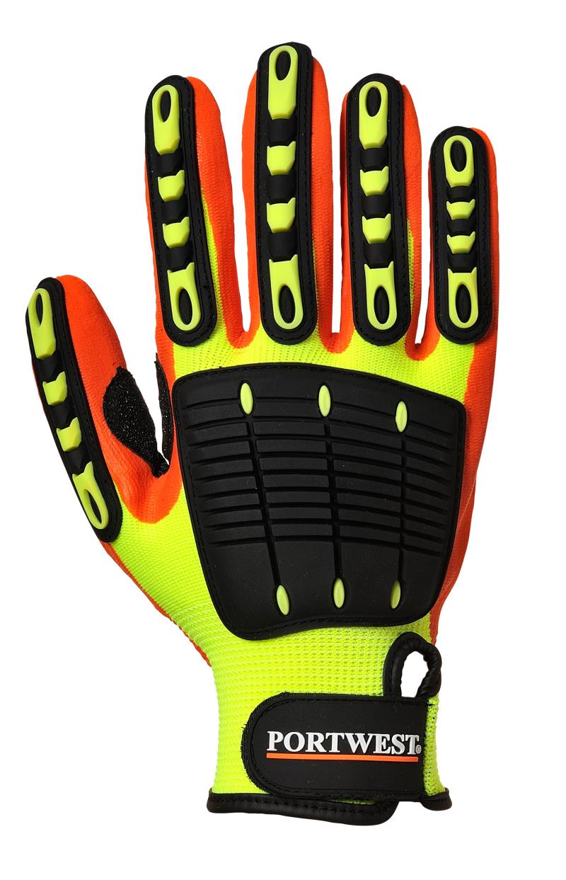 Ventajas : Guante anti Impact Grip en nitrilo.La nueva generación de guantes de trabajo que ofrecen el máximo agarre con la máxima protección contra golpes. El recubrimiento de espuma de nitrilo, resistente a la abrasión, proporciona un excepcional agarre en contacto con agua, aceite o grasa. Soporte sin costuras, ligero y transpirable, con una tira de cierre auto adherente para un ajuste seguro durante todo el día. Composición: TPR, Poliéster, Nitrilo.Cierre con tira de seguridad en velcro.