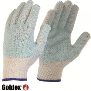 Ventajas : Fabricación ISO9002. Fibra poliéster, más resistante, mezclado con algodón para el bienestar del usuario. Confort de un guante sin costura (no aspereza). Mejor agarre gracias a los puntos de PVC. Una duración de vida superior con los puntos PVC dos caras
