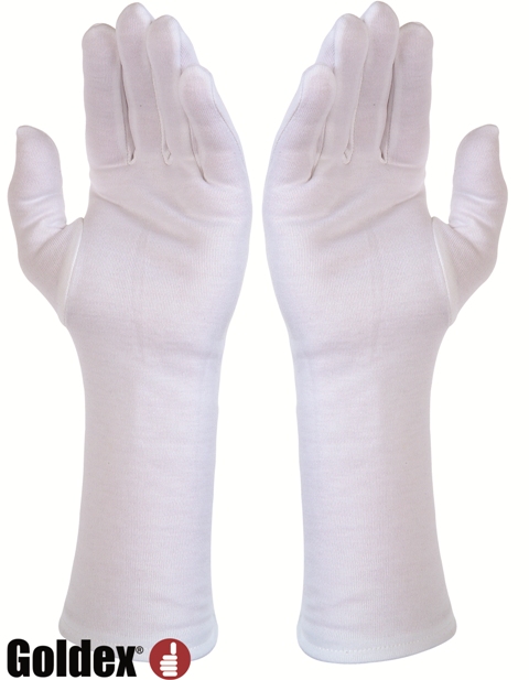 Guante (Pack 10 uds) algodón interlock blanqueado.Longitud especial de 35 cm.JB135