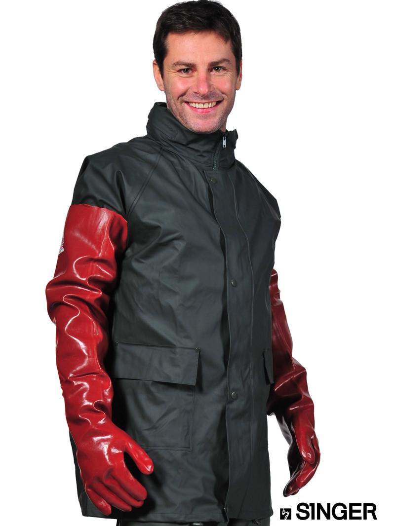 Ventajas : Fiabilidad de una fabricación ISO9002. Calidad del recubrimiento PVC, flexible y resistante. El recubrimiento completo asegura una buena protección contra los líquidos y productos químicos (dirigirse a la tabla de resistencia química). El tratamiento Sanitized ® restringe el desarrollo de las bacterias, hongos y malos olores; propicia la higiene de las manos y favorece la durabilidad del producto acabado. La longitud de este guante asegura una buena protección del brazo y permite el trabajo en lugares dificiles y/o profundos.