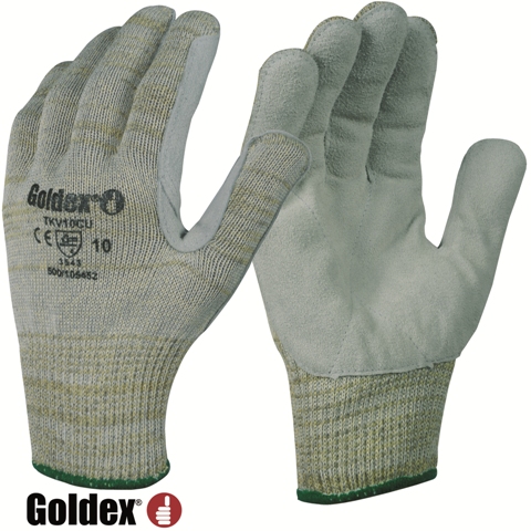 Guante Kevlar® galga 10 palma refuerzo de cuero.TKV10CU
