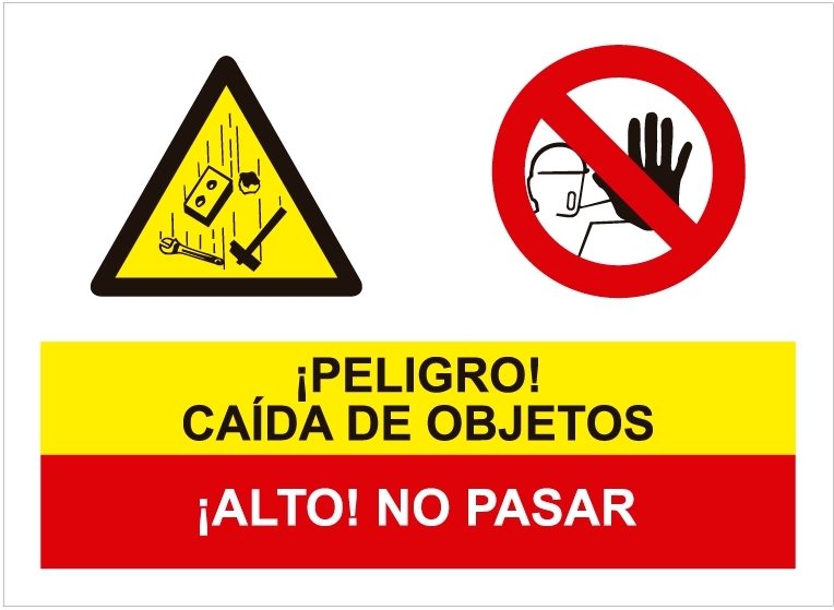 Epi Balear > Productos > SEÑALIZACIÓN > Paneles > Compuestos > Peligro caída de objetos alto no pasar.SCR-1090