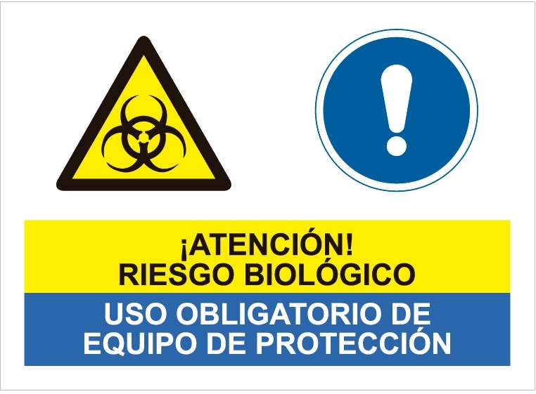 Epi Balear > Productos > SEÑALIZACIÓN > Paneles > Compuestos > Peligro riesgo biológico obligatorio equipo protección.SCR-2085