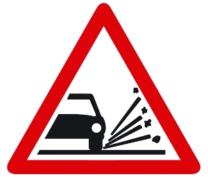 Señal de proyección de gravilla. P-28