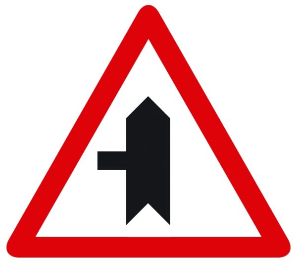 Señal Estrechamiento calzada por izda. P-17B